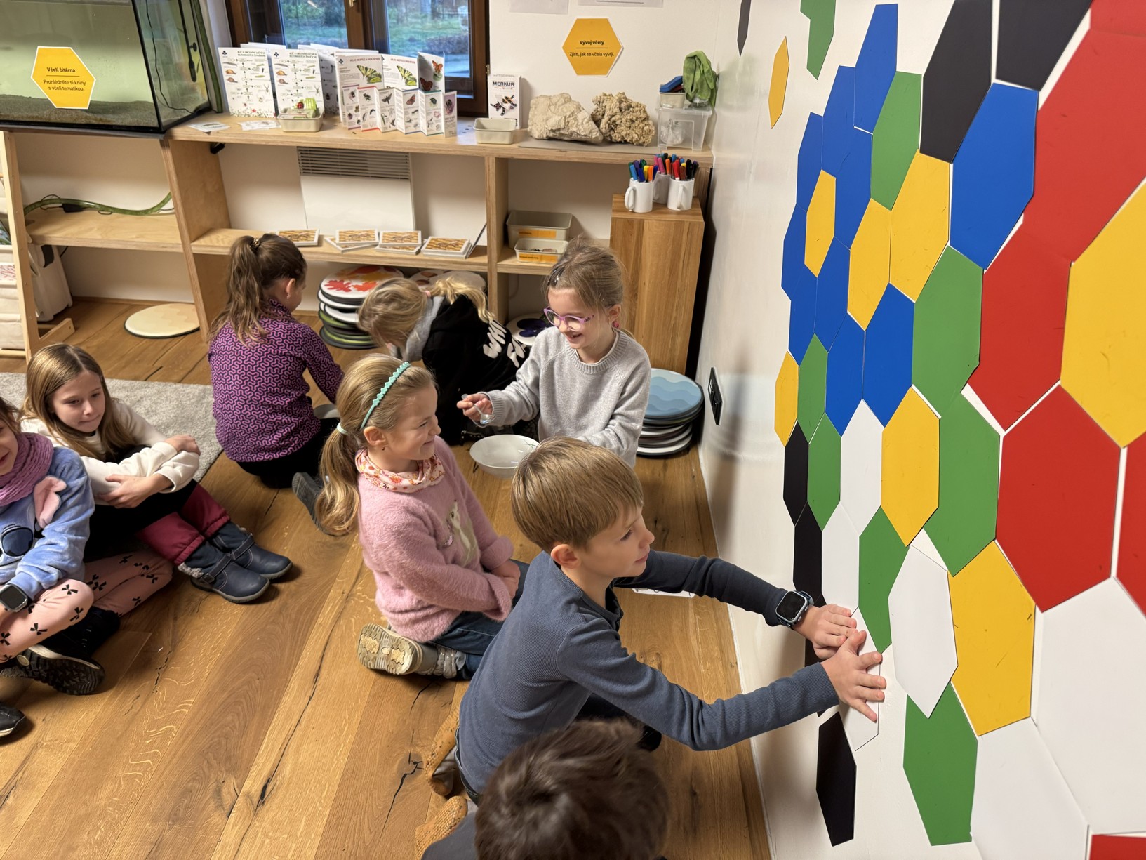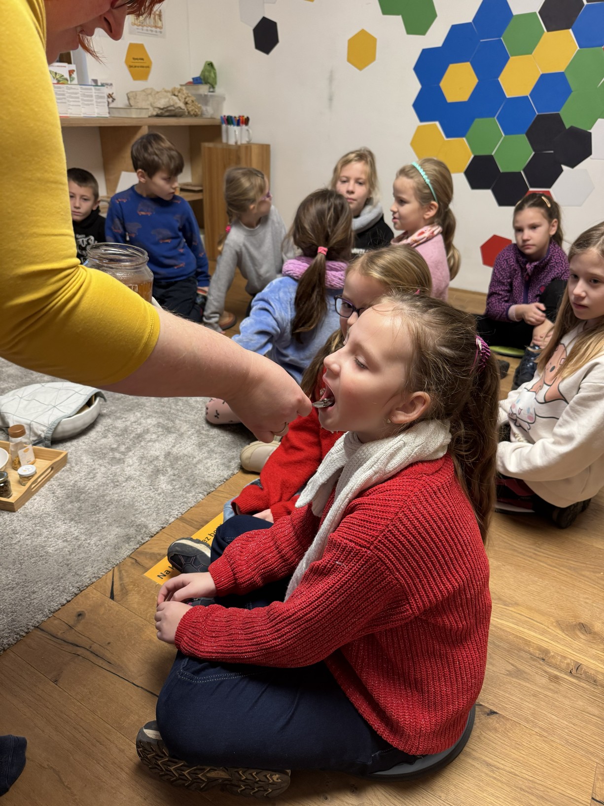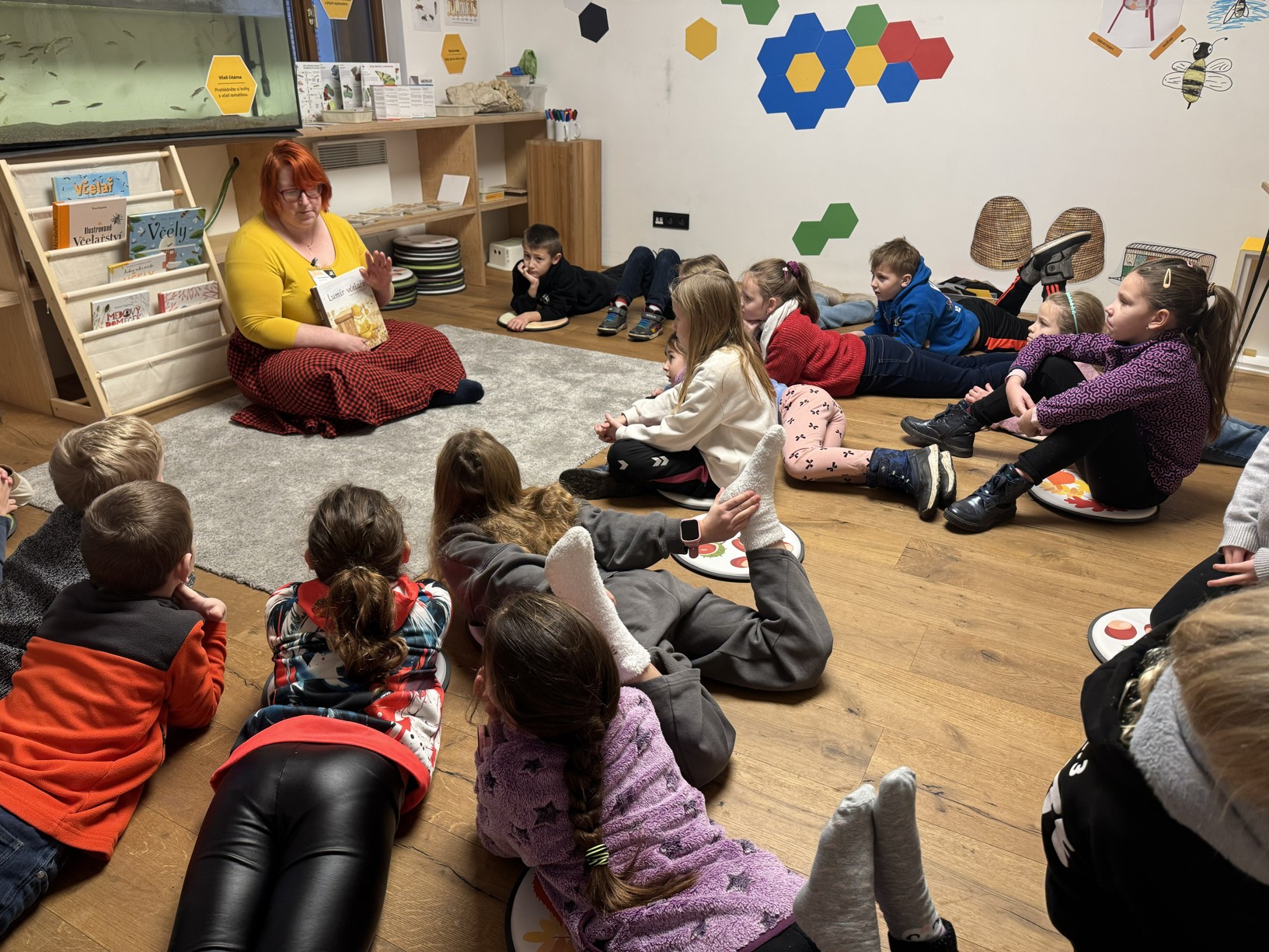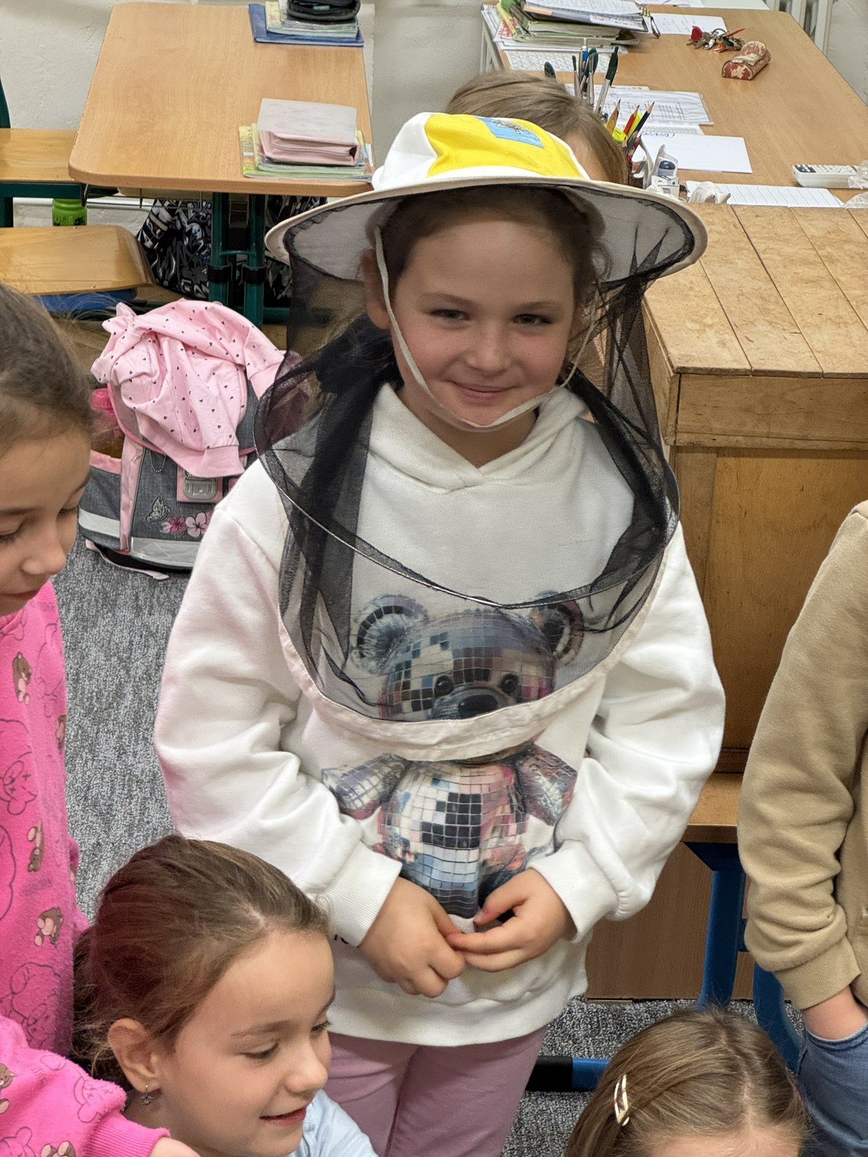 Program začal čtením příběhu o trubci Lumírovi. Na chvíli se jím stal i náš spolužák Tony. Poté nám paní ukázala pomůcky, které včelaři ke své práci potřebují. Následně jsme si vyzkoušeli, jaké to je být skutečnými včelami — byli jsme uklízečky, krmičky, stavitelky, hlídačky i nositelky pylu a nektaru.