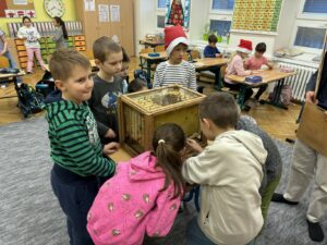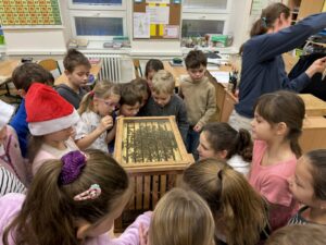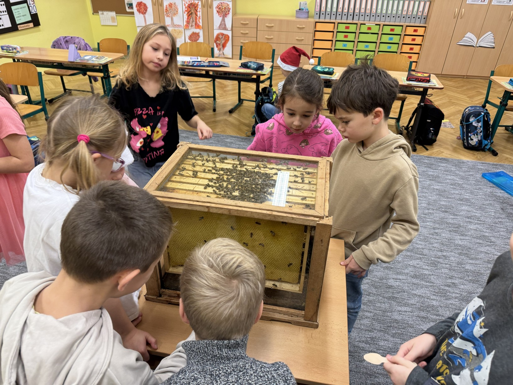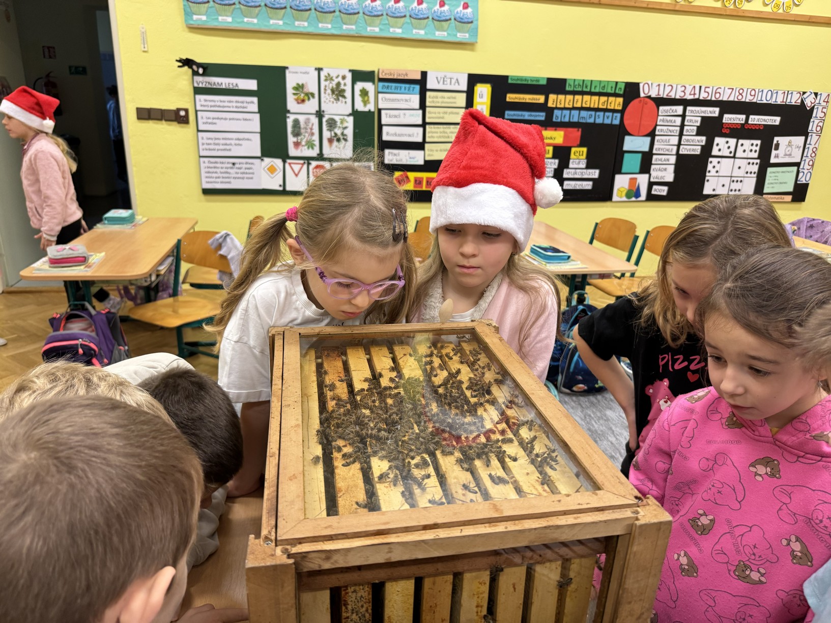 Co ví žák 2. třídy o včelách? Na začátku školního roku určitě ne mnoho, ale dnes už o nich víme opravdu hodně. Informace jsme získali od skutečného včelaře, který k nám 4. prosince přišel do třídy i s úlem, ve kterém byly živé včely. Vyprávěl nám o jejich životě a práci a my jsme se od něj dozvěděli spoustu zajímavostí.