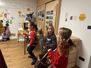 Další část programu probíhala o patro níže. Zde nám jiná paní pustila příběh o tom, co se děje kolem nás. Poté jsme se vydali na včelí stezku, která pokračovala ještě o patro níž. Viděli jsme vycpaná zvířata a mohli jsme se podívat i na ryby. Když jsme stezku úspěšně dokončili, paní vše zkontrolovala a ti, kteří měli odpovědi správně, dostali magnetku.