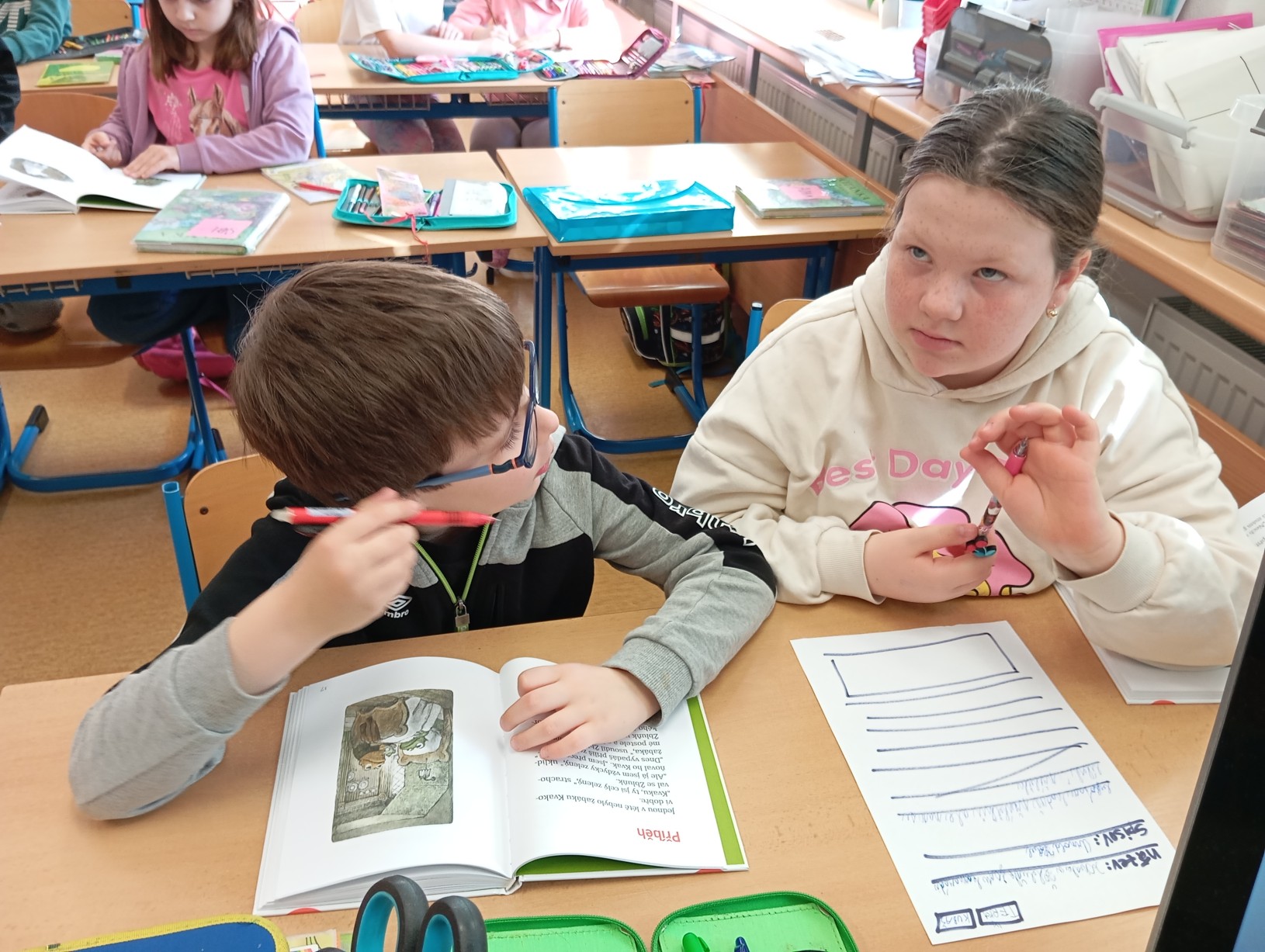 Náš měsíční projekt jsme završili daltonskou výukou na téma čtení a čtenářství. V závěrečném vyhodnocení nám vyšlo, že porozumění textu i schopnost práce s ním máme na vysoké úrovni. Knihu už vnímáme jako parťáka do nepohody, kamaráda, který poradí, i jako zdroj humoru v každodenním životě. A za to jsme všichni moc rádi.