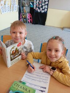Ve čtenářských dílnách jsme se díky tandemovému čtení věnovali knize Kvak a Žbluňk jsou kamarádi, která nás dokázala rozesmát. Stejně tak nás baví kniha od Nataši Tanské S holkou si nehrajem, kterou nám paní učitelka čte na pokračování. Samozřejmě také čteme a představujeme spolužákům knihy podle vlastního výběru a v případě zájmu si je mezi sebou půjčujeme.