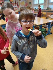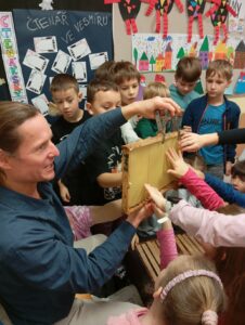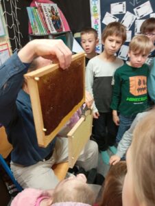 Dne 4. prosince 2025 nás ve druhých třídách navštívil včelař pan Mgr. Tomáš Gabriel Roblík z Újezdu u Brna, který se věnuje chovu včel a ochraně včelstev. Přišel k nám na besedu o těchto malých a velmi důležitých tvorech. Přinesl si úl bez včelek, kde dětem ukazoval rámky s voskem a vysvětloval, jak včelky pracují a co v rámcích dělají. Půjčil žákům i včelařskou výbavu jako je kukla, kleště na rámky, dýmák i rukavice. Hlavně nám však přinesl ještě jeden úl s živým včelstvem. Včeličky byly pod sklem ze všech stran, a tak na ně děti pěkně viděly. Mohly si prohlédnout jejich hemžení, poslechnout bzučení, líhnutí mladušky i systém v jakém se pohybují. Včelí královna byla uvnitř a zvnějšku jsme viděli samé pilné dělnice. Děti měly na pana včelaře i zajímavé otázky a on jim ke konci besedy dal ochutnat pravý včelí med jako sladkou tečku za touto návštěvou.