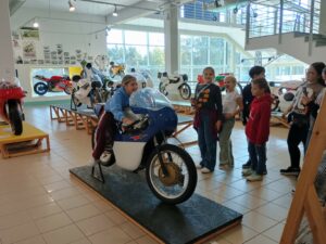 Se třídami 4. D a 4. E jsme si udělali hezký pátek a 3. října jsme navštívili Technické muzeum v Brně. Zběžně jsme celé muzeum prošli, ale některé expozice nás zaujaly víc. Kdo by si nechtěl vyzkoušet, jak se sedí na motorce nebo velocipédu. Obdivovat staré krásné automobily a letadla, prohlédnou si parní stroj nebo staré hudební nástroje. Projít se uličkou řemesel, která demonstruje, jak ulice vypadaly před sto lety. Nahlédnout k zubaři, krejčímu, kadeřnici, do koloniálu nebo se posadit v dřevem vykládané hospodě.
