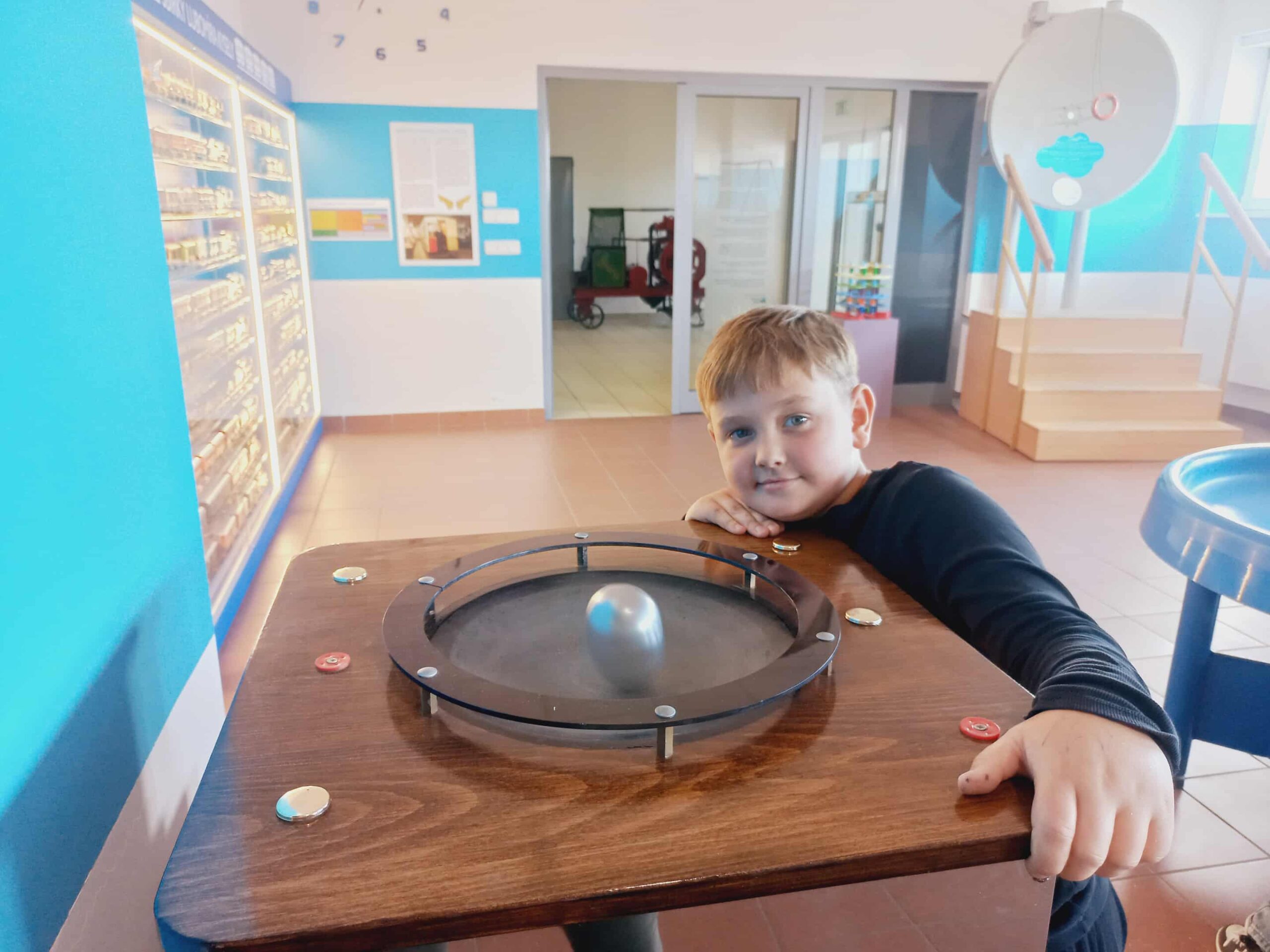 Krom expozic nás také zaujala technická herna, která zábavnou formou děti seznamuje s fyzikálními zákony. Optické klamy, hry se světlem, odstředivá a dostředivá síla, kladky apod. byly natolik zábavné, že se nám z herny ani nechtělo odcházet.