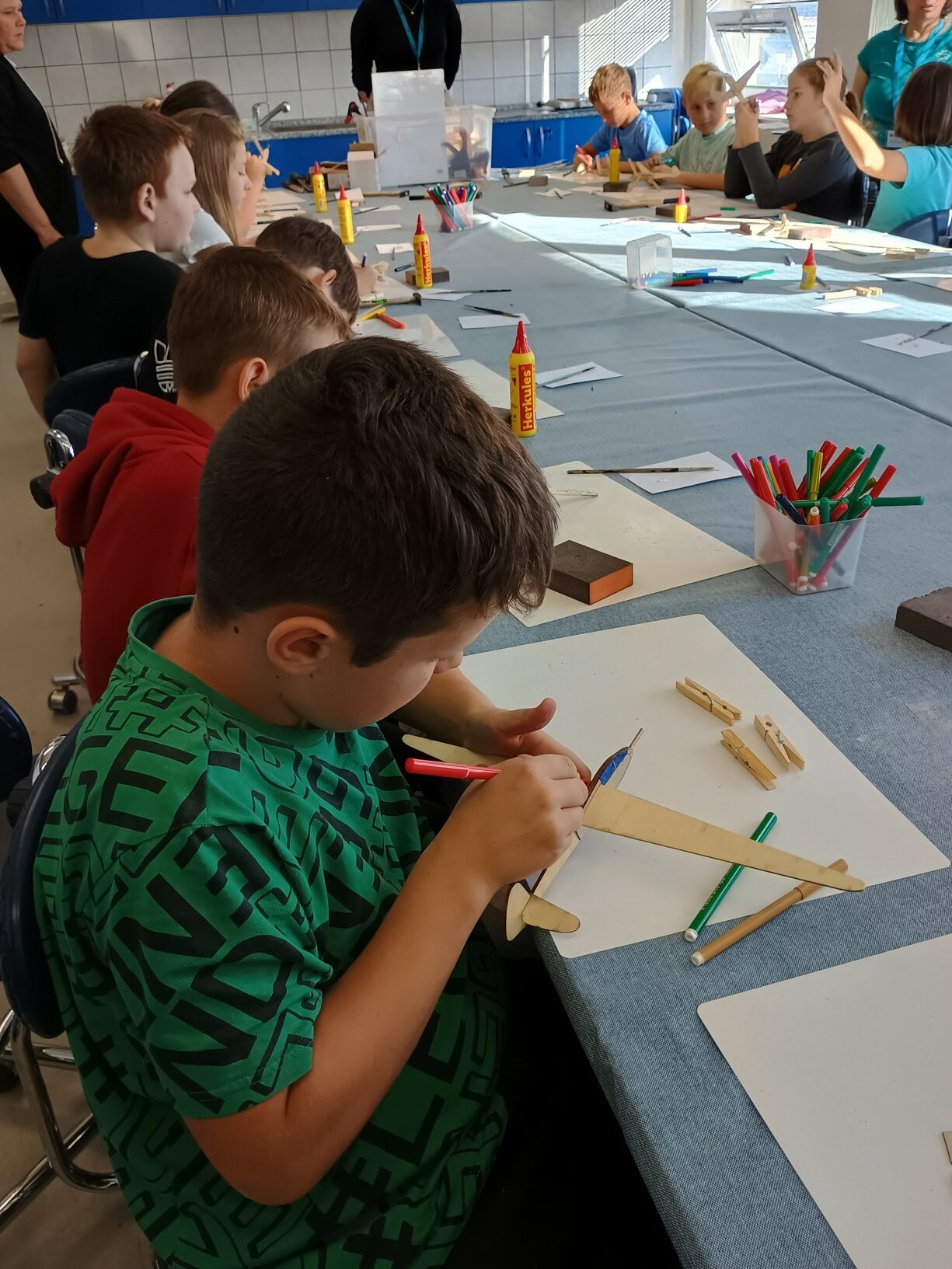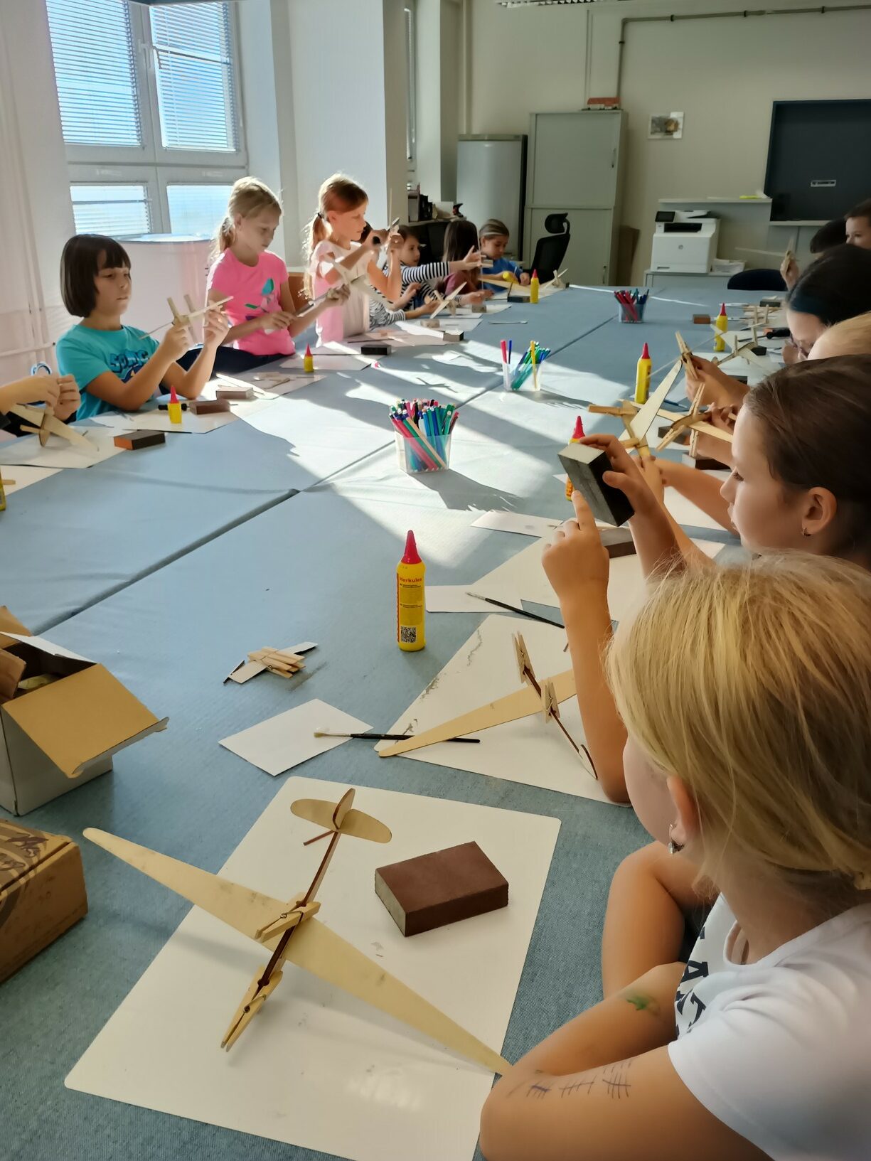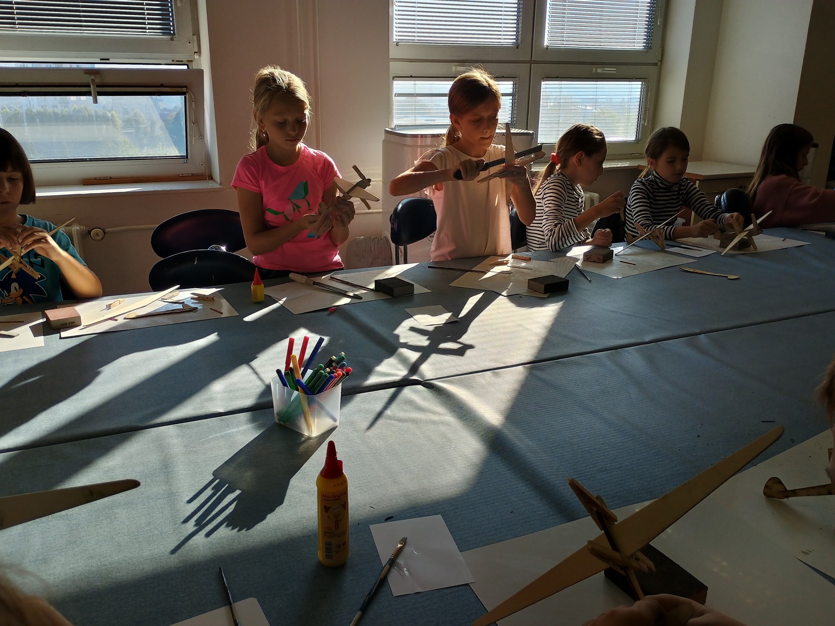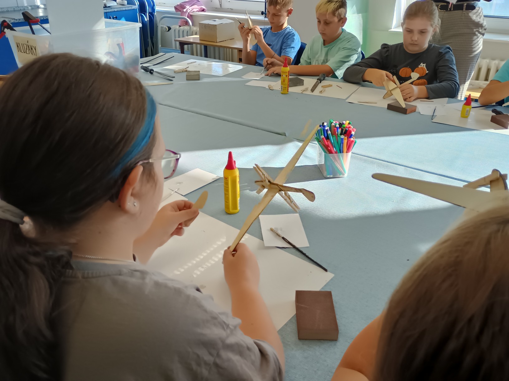 Třešničkou na dortu naší návštěvy však byla výtvarně-technická dílna, kde jsme si vyrobili vlastní dřevěné letadlo. Výroba byla ale náročná. Letadlo jsme museli dlouho brousit smirkovými papíry a pilníky, aby do sebe jednotlivé díly zapadly. Ty jsme pak museli slepit a trpělivě čekat, až lepidlo zaschne. Pomocí kladívek jsme následně připevnili na špičku závaží. Nakonec jsme si letadlo pokreslili podle vlastní fantazie a zůstane nám jako připomínka hezkého dne. Doufáme, že se do muzea zase někdy podíváme.