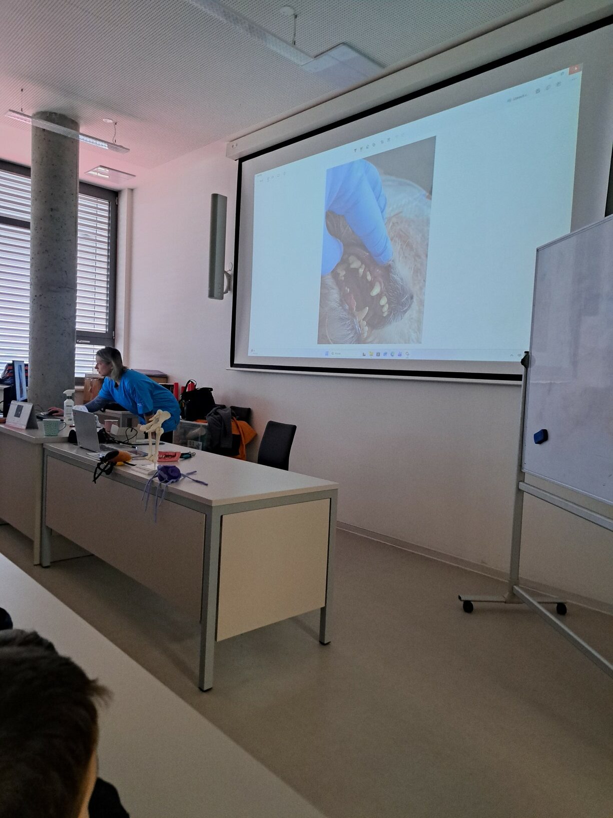 Děti se dozvěděly, kdy je vhodné navštívit veterináře se svým mazlíčkem, a měly možnost vyzkoušet si různé veterinární nástroje. Paní doktorka přinesla například fonendoskop, aby si děti mohly poslechnout tlukot vlastního srdce, ukázala kleště na zuby nebo rentgenové snímky zvířecích pacientů. Odpovídala také na různé dotazy týkající se jejich čtyřnohých přátel.