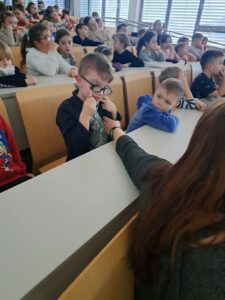 Podobná beseda pro starší děti z družiny (3. třídy a dětský klub) se uskutečnila 10. února, rovněž v aule školy. Při ní se ukázalo, jak děti zajímá svět zvířat, jejich život i příběhy.
