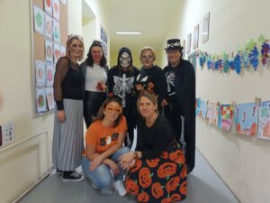 Všichni jsme se seznámili s tradicemi tohoto dne a potom jsme začali tvořit a plnit úkoly, které nebyly vůbec snadné. Zkoušely se nebezpečné pokusy, tanečky v kostýmech, módní přehlídky, vyrábění, stezky, a ti nejmenší se dokonce šli podepsat do tmavého sklepení.