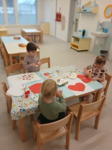 Únor jsme si zpříjemnili oslavou svátku svatého Valentýna. Děti vyráběly krásná srdíčka, která s radostí věnovaly svým maminkám.