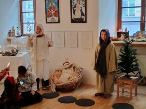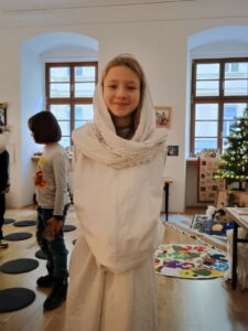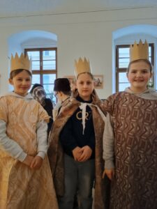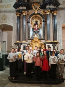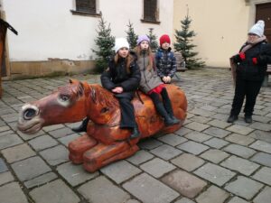 Hlavním cílem však pro nás byl Palác šlechtičen na Kobližné. V této nádherné budově a expozici, která patří k Moravskému zemskému muzeu, jsme byli všichni poprvé. Cítili jsme se jak v pohádce. Pohádku jsme nakonec i prožili. Zahráli jsme si biblický příběh a povídali jsme si o tom, co je na Vánoce nejdůležitější a po čem touží všichni lidé na světě. Společně jsme si vyrobili tradiční hračku a užili jsme si spoustu zábavy. Nakonec jsme zavítali na výstavu Hravěk v místní kapli a vyzkoušeli jsme si tamní akustiku. Rolničky, rolničky se tak krásně nesly na celý palác.