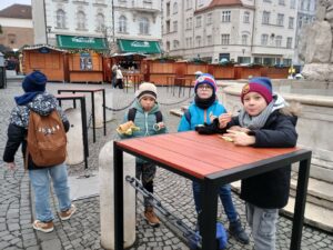 Předvánoční čas dnes už bývá spíše časem shonu. My jsme si ale ve 4. E dovolili zpomalit a vydechnout. Nejprve jsme navštívili tradiční trhy v Brně. Dorazili jsme brzy ráno a byli jsme tak v centru skoro sami. Měli jsme dost času projít si všechna krásně nazdobená náměstí, zazvonit si na zvoneček a prohlédnout si betlém. Nejvíce legrace jsme zažili na vyřezávaných zvířatech a otočných lavičkách. Zaujal nás krokodýl ve svetru i jeho chlupaté vejce. Na Zelném trhu jsme si pak dali něco dobrého na zub.