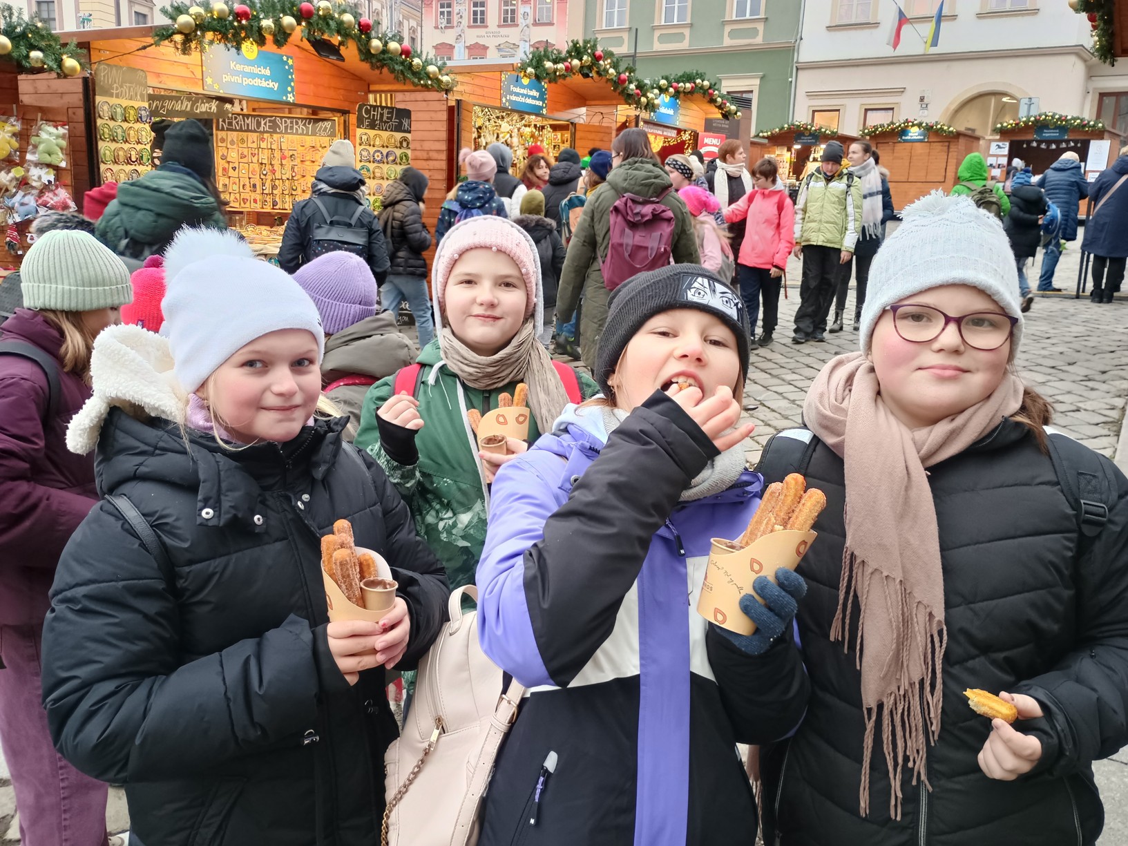 Předvánoční čas dnes už bývá spíše časem shonu. My jsme si ale ve 4. E dovolili zpomalit a vydechnout. Nejprve jsme navštívili tradiční trhy v Brně. Dorazili jsme brzy ráno a byli jsme tak v centru skoro sami. Měli jsme dost času projít si všechna krásně nazdobená náměstí, zazvonit si na zvoneček a prohlédnout si betlém. Nejvíce legrace jsme zažili na vyřezávaných zvířatech a otočných lavičkách. Zaujal nás krokodýl ve svetru i jeho chlupaté vejce. Na Zelném trhu jsme si pak dali něco dobrého na zub.