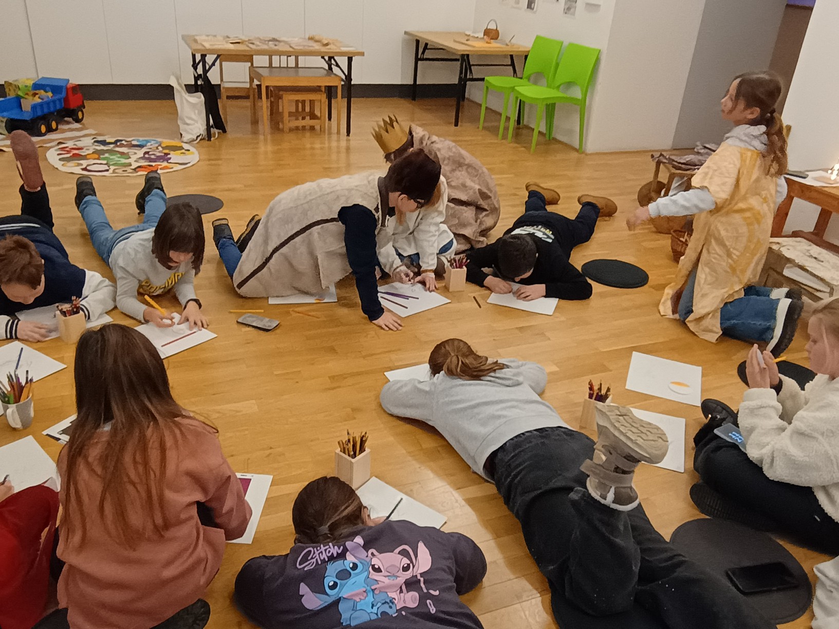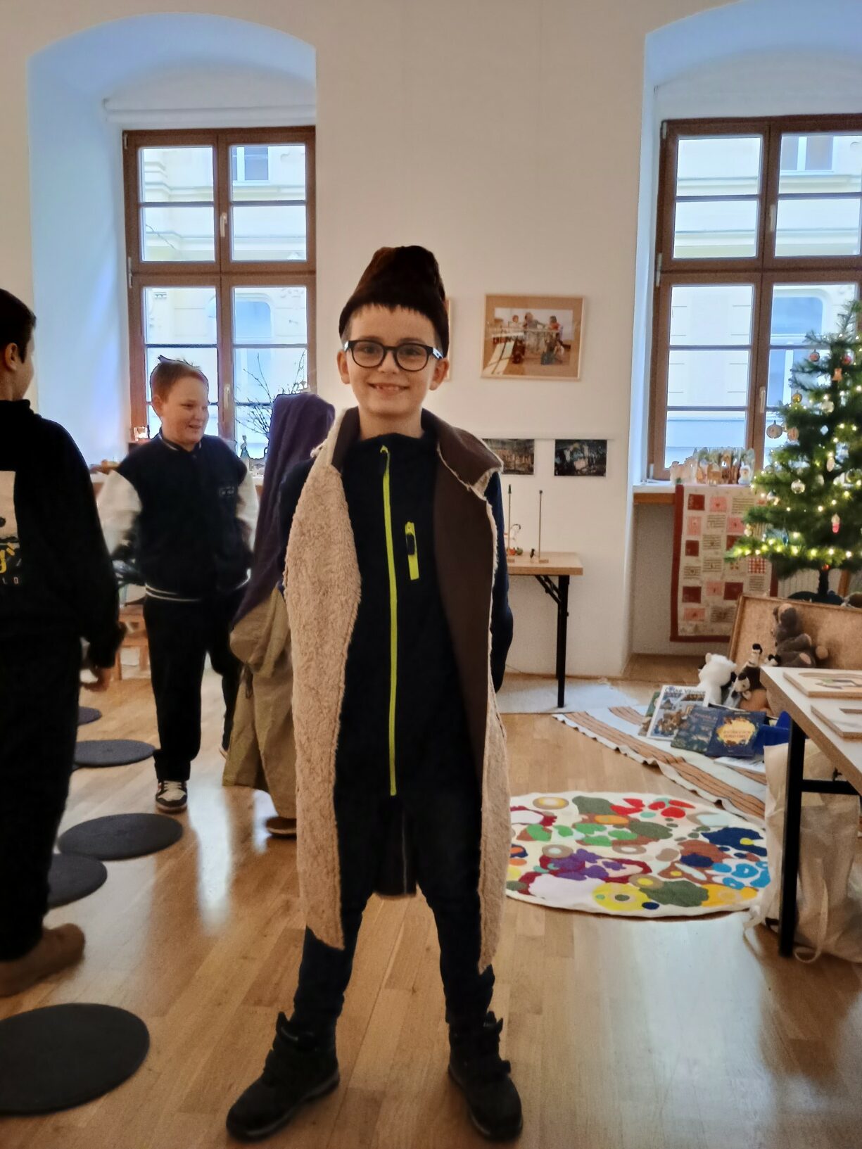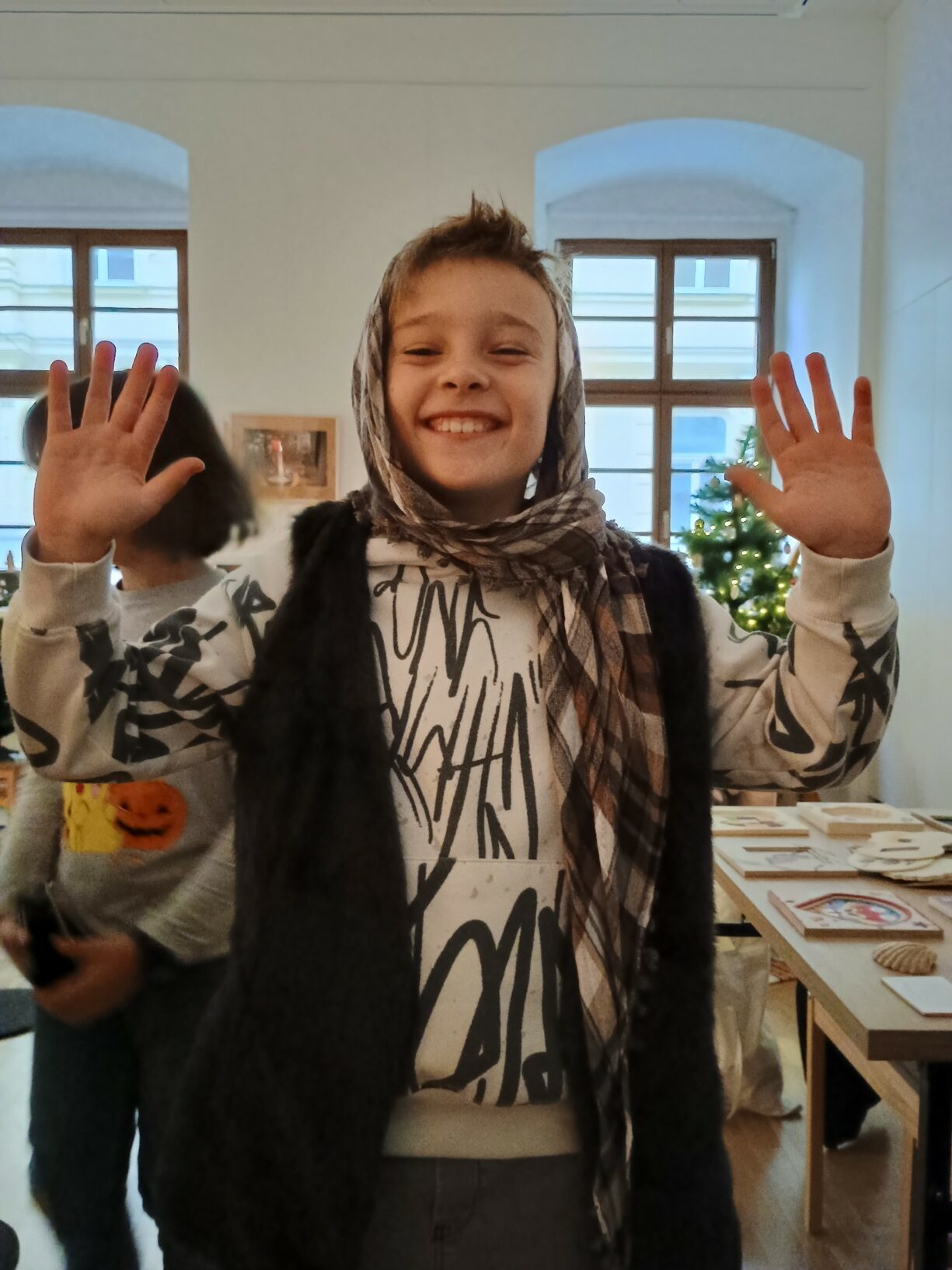 Hlavním cílem však pro nás byl Palác šlechtičen na Kobližné. V této nádherné budově a expozici, která patří k Moravskému zemskému muzeu, jsme byli všichni poprvé. Cítili jsme se jak v pohádce. Pohádku jsme nakonec i prožili. Zahráli jsme si biblický příběh a povídali jsme si o tom, co je na Vánoce nejdůležitější a po čem touží všichni lidé na světě. Společně jsme si vyrobili tradiční hračku a užili jsme si spoustu zábavy. Nakonec jsme zavítali na výstavu Hravěk v místní kapli a vyzkoušeli jsme si tamní akustiku. Rolničky, rolničky se tak krásně nesly na celý palác.