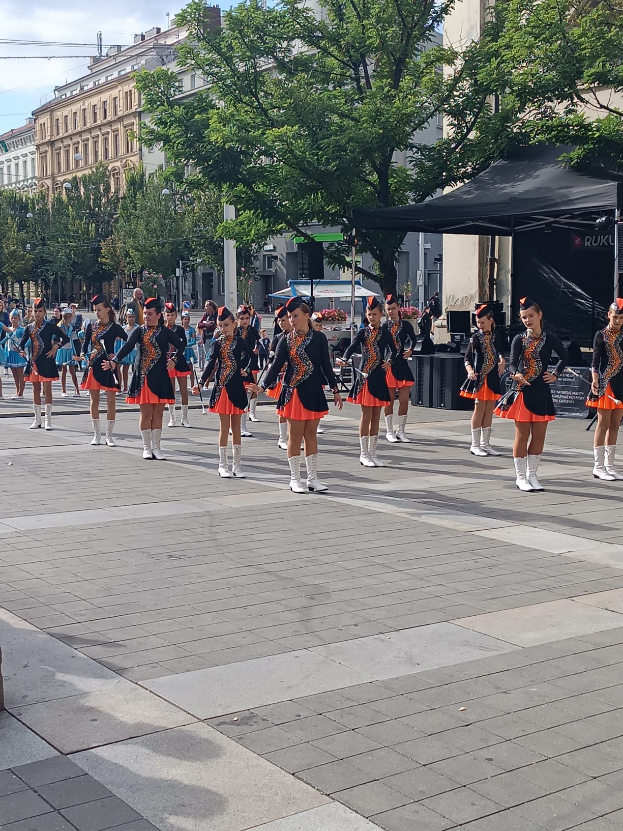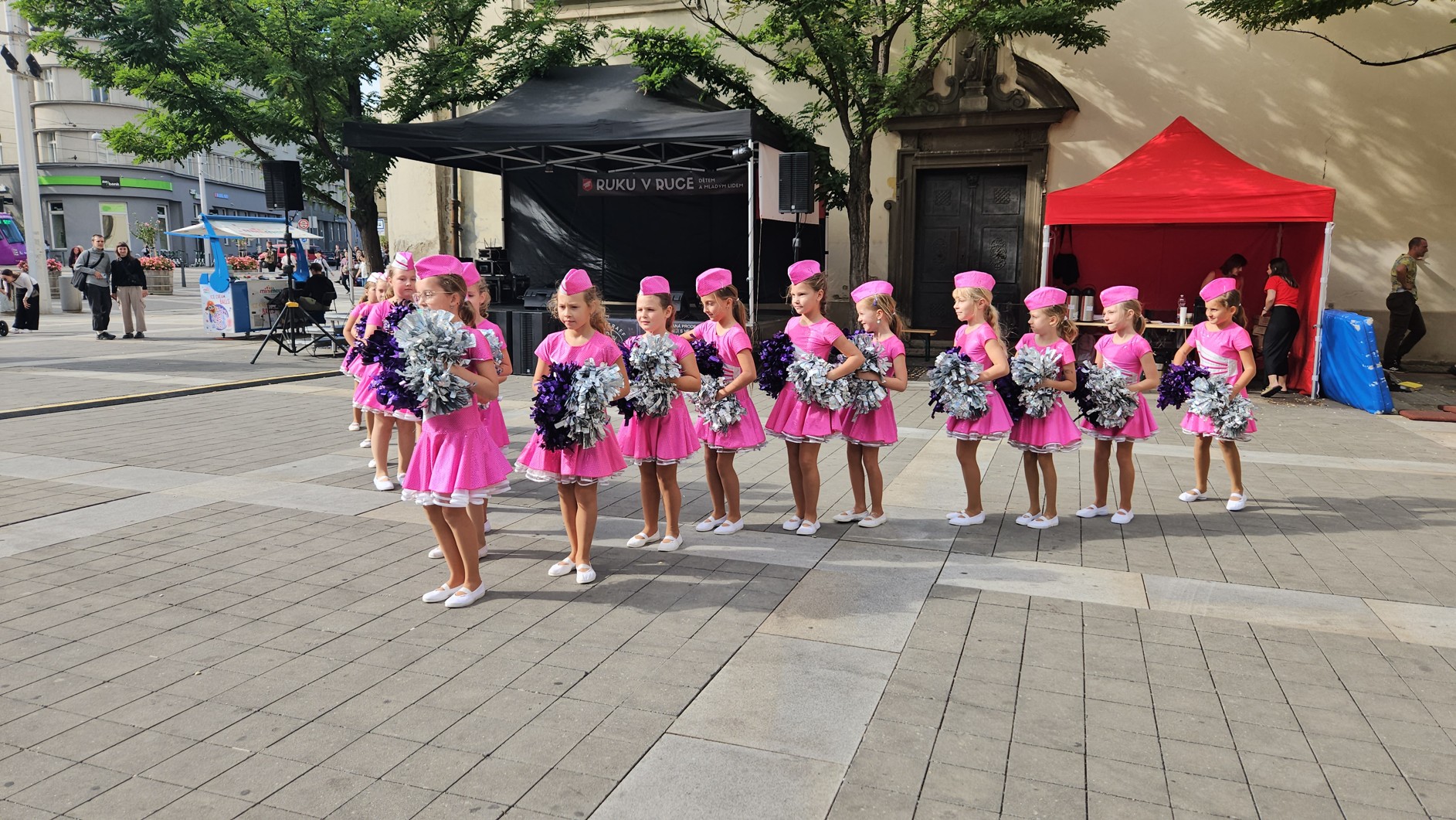 V pátek 12. září se na Moravském náměstí v Brně konal festival Ruku v ruce, kterého se účastnily naše mažoretky. Je to kulturní akce věnovaná na podporu nízkoprahových zařízení pro děti a mládež. Mažoretky byly součástí odpoledního programu. Děvčata se chystala už týden předem. Bez tréninku to nejde, proto dívky zahájily kroužek hned druhý týden ve škole. Předvedly 30minutové pásmo skladeb na moderní a dechovou hudbu s hůlkou i pom-pomy. Rozloučily se jako vždy ohlédnutím se za tradicí mažoretkového sportu, závěrečným defilé Kapitán Římek.