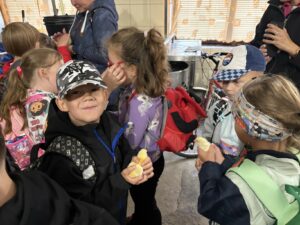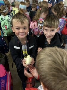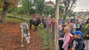 Počasí nám přálo, cesta nám uběhla rychle a velmi milé bylo přivítání od paní Šťastné, která si pro každého žáčka připravila sladkou odměnu.