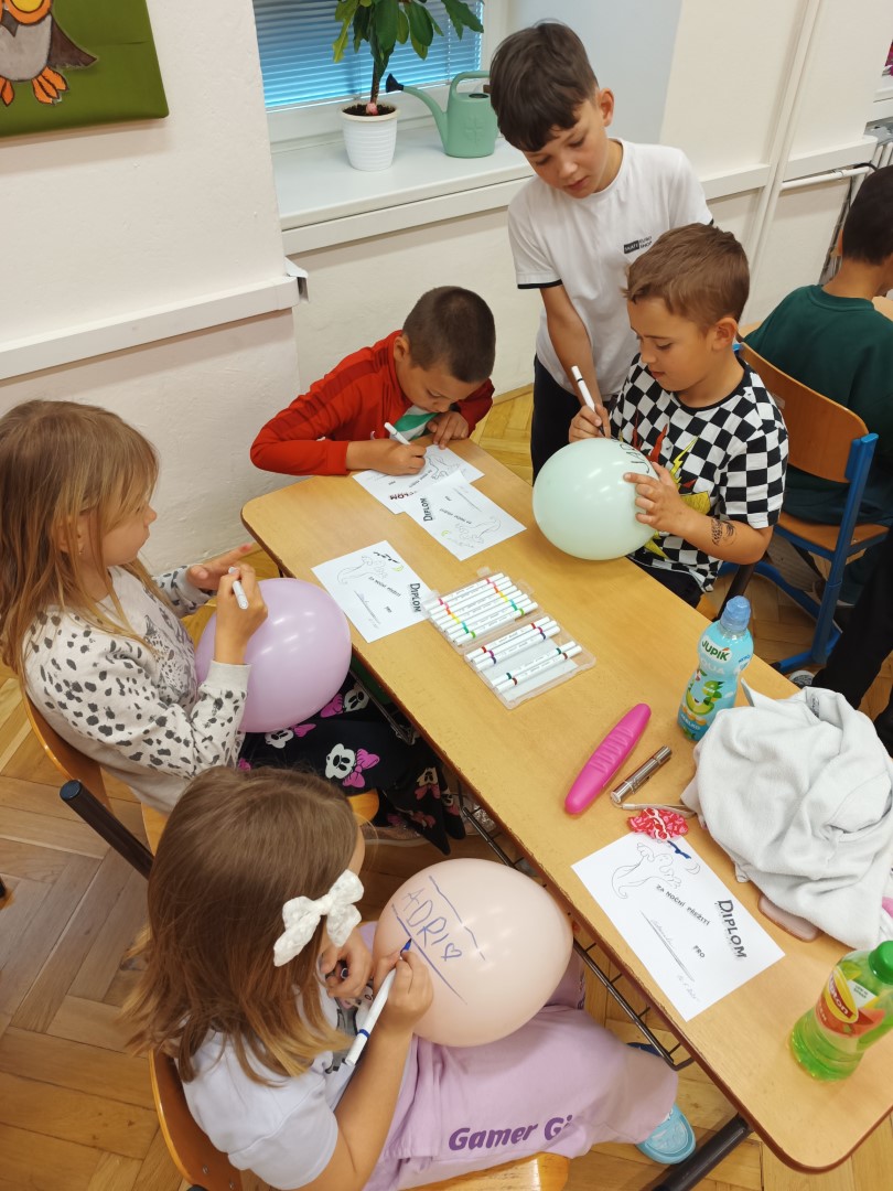 Po návratu do školy pokračoval program soutěžemi, které děti nejen pobavily, ale i pořádně rozesmály. Večer jsme se uložili ke spánku při poslechu pohádky. Ráno jsme zahájili společnou snídaní a každé dítě si odneslo diplom za statečnost, že zvládlo noc bez rodičů.