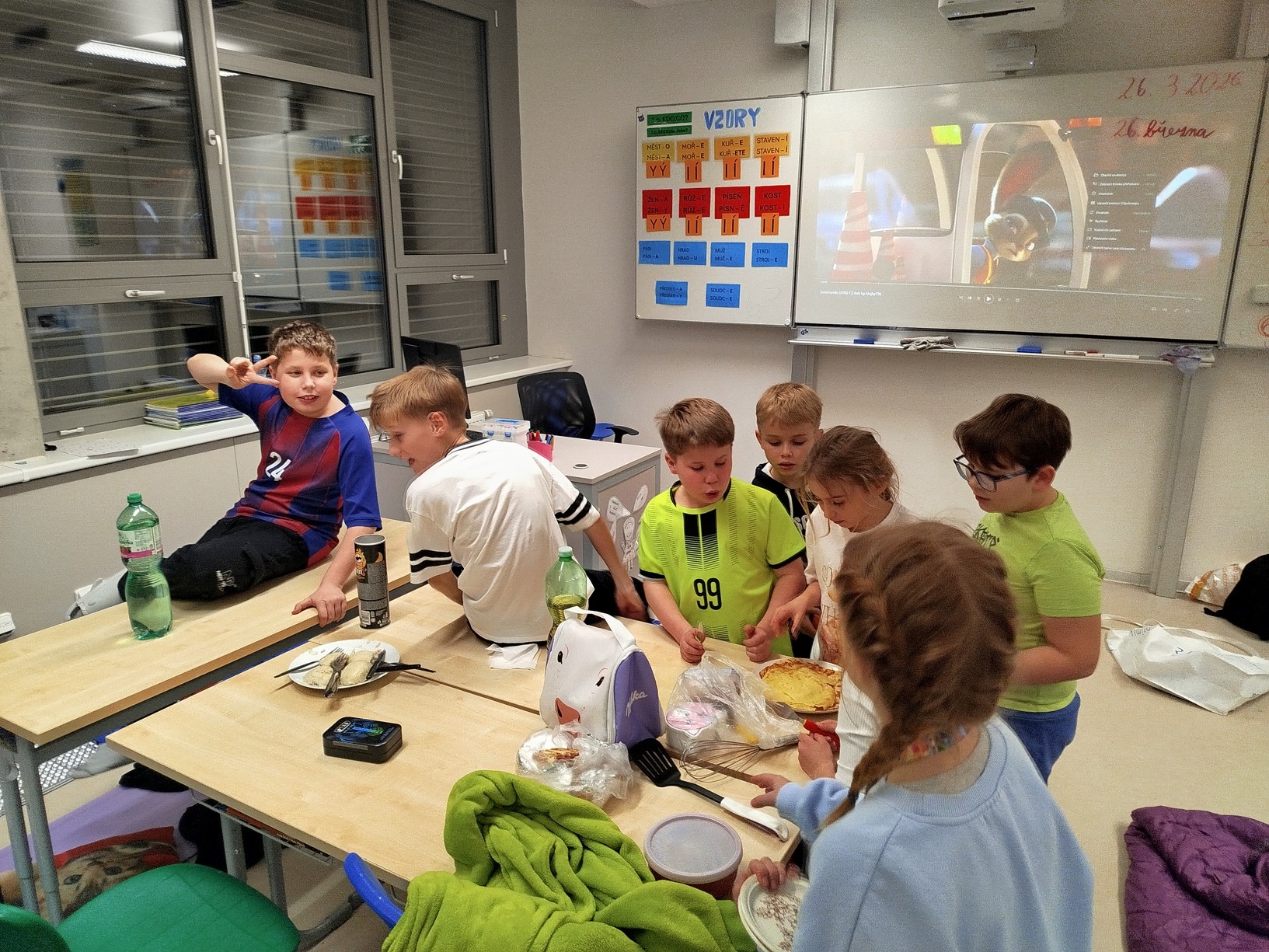 Jakmile byli všichni žáci pohromadě a začal se ozývat hlad, přesunuli se do kuchyňky, kde si vyzkoušeli své kuchařské dovednosti. A nutno dodat, že s velkým úspěchem, protože nechyběly ani bezlepkové palačinky.