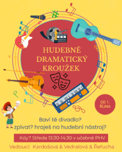 Od letošního školního roku bude na základní škole nově otevřen hudebně-dramatický kroužek, který povedou Yvona Kardošová, Tereza Vedralová a Michal Řeřucha.