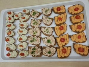 Napadlo nás tuto akci zorganizovat i na naší škole u příležitosti třídních schůzek 25. 11. 2025. Rodičům jsme připravily nejen ochutnávku obědů, ale také ranních a odpoledních svačinek. Zkrátka, co jsme dopoledne uvařily a připravily dětem, jsme daly v podvečer ochutnat i rodičům. Děti mají v oblibě omáčky a vývarové polévky, proto jsme zvolily hovězí polévku s játrovými knedlíčky a nudlemi, kuřecí na paprice s knedlíkem a těstovinový salát s hovězím masem a grilovanou zeleninou. Současně kolektiv školní kuchyně připravil dezerty: šlehaný jogurt s chia semínky ozdobený ovocným rozvarem a tiramisu. Návštěvníkům jsme nabídly také kanapky s avokádovou, tuňákovou a ajvarovou pomazánkou. Pro dokonalou pohodu během degustace školních pokrmů byla zájemcům podávána voňavá káva.