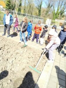 Děti ze školní družiny se zapojily do zahradnických prací. Seznamují se se základy pěstování ovoce a zeleniny. Nejprve bylo potřeba připravit záhonky pro setí a výsadbu sazenic, což děti zvládly s velkým nasazením. V následujícím období se budou o své záhonky pravidelně starat, čeká je pletí, okopávání i zálivka. Postupně tak získají praktické zkušenosti s péčí o rostliny a budou moci sledovat jejich růst od semínka až po úrodu. Na záhoncích se již objevily první výsevy a výsadba. Děti zasadily například ředkvičky, hrášek, bylinky a jahody.