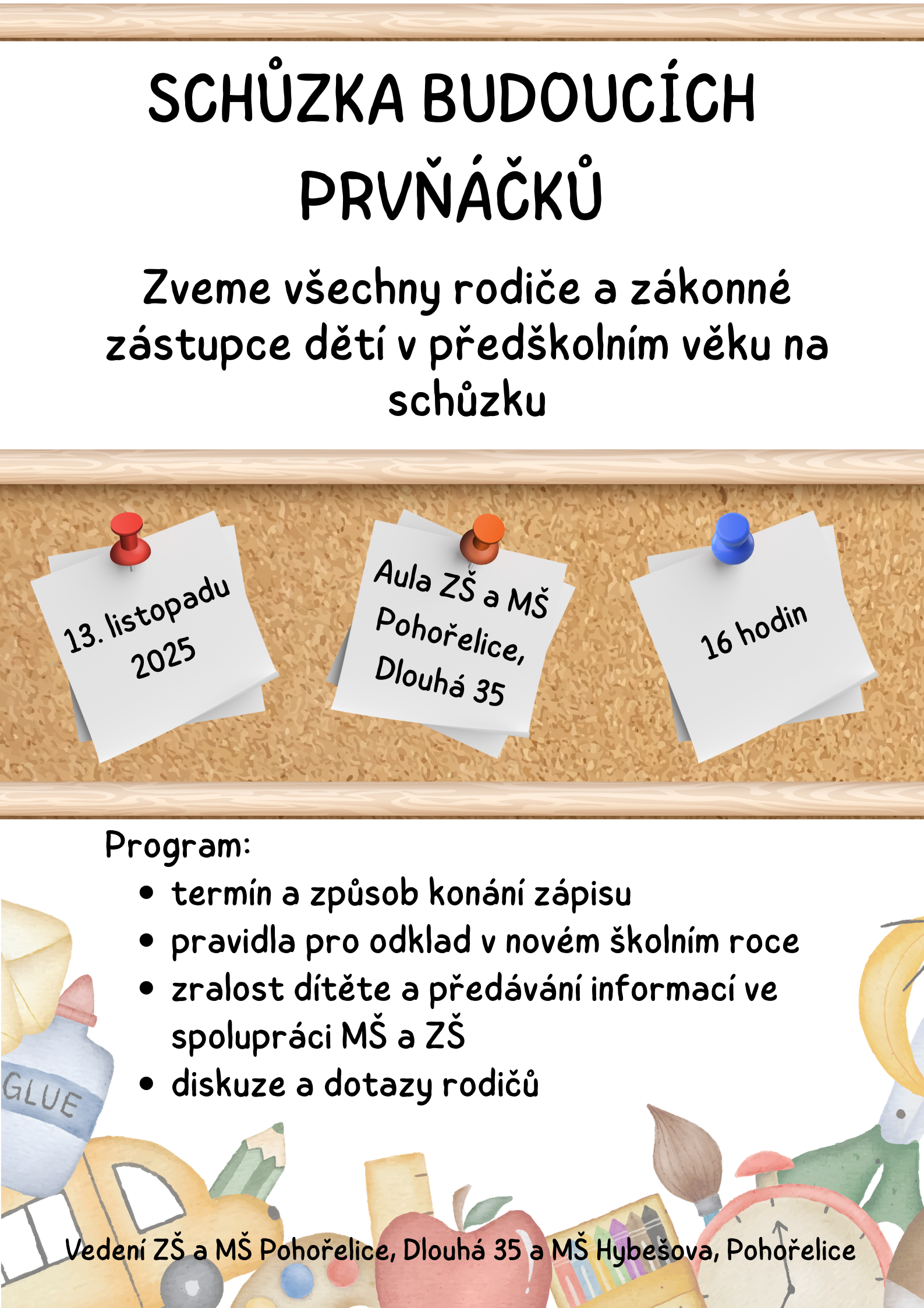 ZŠ a MŠ Pohořelice ve spolupráci s městem Pohořelice otevírá 2 dětské skupiny v nové budově ve Smolíně od 1. ledna 2026. Péče je určená pro děti předškolního věku. Dětské skupiny spadají pod Ministerstvo práce a sociálních věcí, a proto je potřeba prokázat, že zákonný zástupce dítěte pracuje.