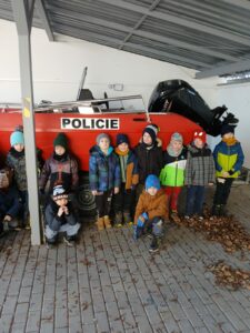Ve čtvrtek 20. února navštívily děti z přípravného ročníku Policii ČR v Pohořelicích. Prohlédly si nejen kanceláře a velín, ale měly také možnost si prozkoumat policejní auto a jeho vybavení. Dále se podívaly do člunu, ve kterém policisté dokáží manévrovat na vodě i v náročných chladných dnech spolu s potápěči.
