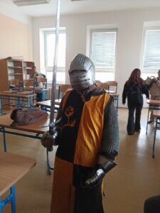 Žáci 7. ročníku v rámci výuky dějepisu na vlastní kůži zažili život středověkých válečníků. Všichni se seznámili se základními součástmi výzbroje rytířů,