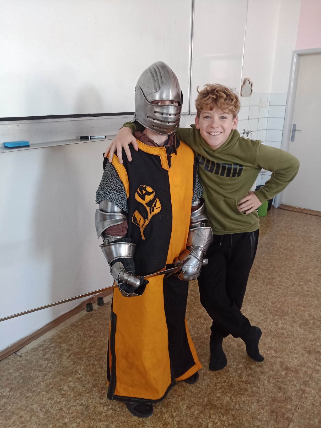 Žáci 7. ročníku v rámci výuky dějepisu na vlastní kůži zažili život středověkých válečníků. Všichni se seznámili se základními součástmi výzbroje rytířů,