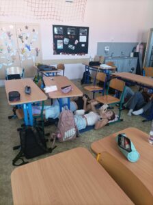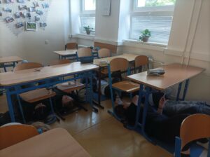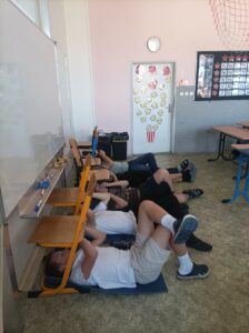 Aby si žáci dokázali představit, jak těžké muselo být malovat celé měsíce v leže na lešení, připravili jsme si pro ně malý experiment. Každý si nalepil papír na spodní část židle, lehl si na zem a pokusil se nakreslit vybraný motiv ze Sixtinské kaple právě tímto způsobem. Žáci si tuto aktivitu užili, smíchu i tvořivosti bylo hodně. Po chvíli se ale začaly ozývat první stížnosti na bolavé ruce a nepohodlí. Všichni si díky tomuto experimentu uvědomili, jak obrovskou trpělivost a sílu musel Michelangelo mít, aby své dílo dokončil.