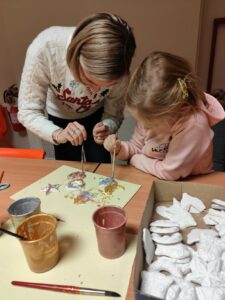 Ve čtvrtek 11.12.  odpoledne se proměnila naše jídelna na Lidické v adventní dílnu. Děti z přípravných ročníků společně se třídou 1.E  si společně se svými rodiči přišli nasát vánoční atmosféru, ochutnat perníčky a cukrovinky a společně si vyrobit nějaký vánoční výrobek, kterým si vyzdobí svoje pokojíčky nebo obývací pokoje svých domovů.  Předvánoční čas je plný shonu, chystání, ale také období setkávání a proto jsme byli všichni moc rádi, že jsme se alespoň na chvíli mohli sejít a něco hezkého si vyrobit.