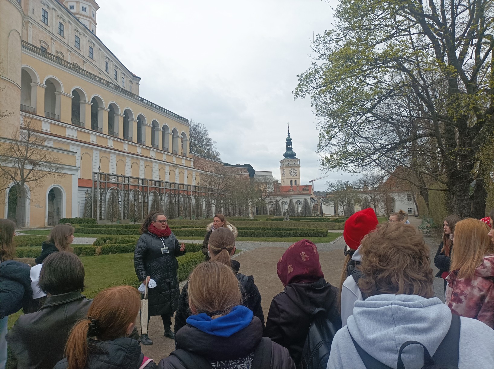 Prohlídku jsme začali netradičně v zámeckých zahradách. Zde jsme se dozvěděli, co všechno nás čeká, kteří šlechtici nás budou provázet a jaká je historie celého místa, tzv. „od hradu k zámku“. Poté jsme se rozdělili do skupin podle historických období gotiky, renesance a baroka a nejdůležitější role klíčníka se ujal jeden z žáků, aby mohl být průzkum zámku zahájen.