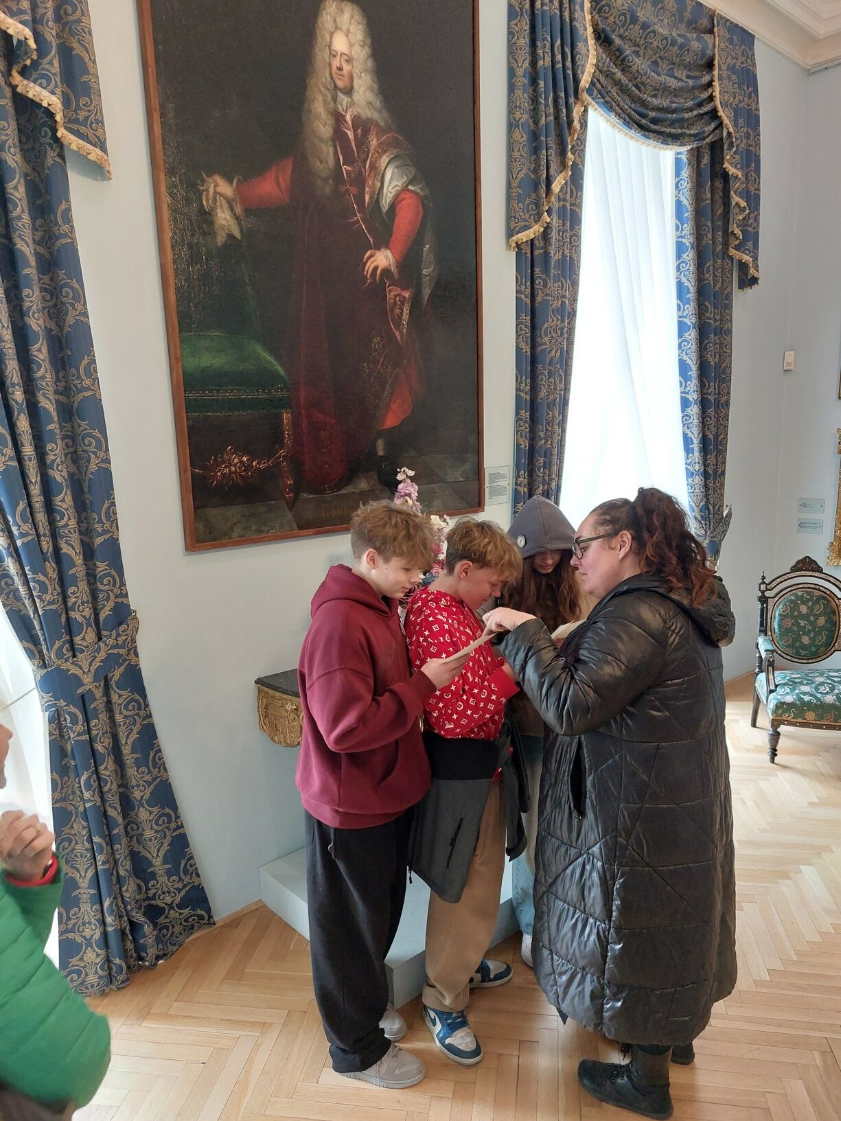 Čekal nás přednáškový sál, kde jsme luštili vzkaz z období baroka. Následovala pracovna zámeckého pána, v níž jsme hledali další indicie a postupně rozkrývali záhadu původního hradu. V dalším nádherně vybaveném pokoji jsme se převtělili do světově známých osobností, které byly se zámkem spjaty.