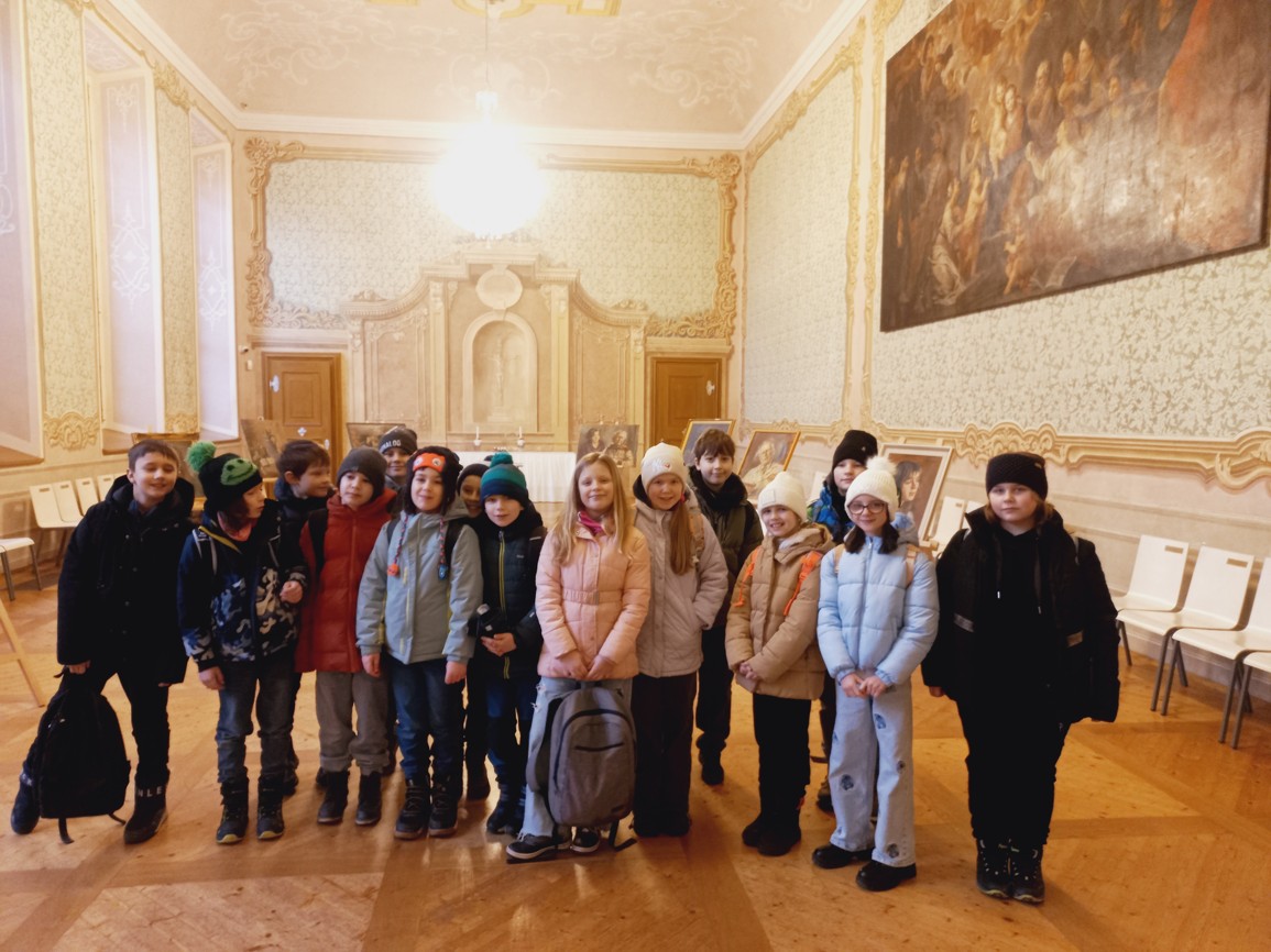 V den přijímacích zkoušek nanečisto, 28. ledna, jsme uvolnili naši třídu 4. D pro žáky devátého ročníku a běžnou autobusovou linkou se vydali do Rajhradu. Klouzavou procházkou (náledí nás provázelo už od školy) jsme šli od vlakového nádraží až k benediktínskému klášteru, v jehož prostorách se nachází jedna ze šesti poboček Muzea Brněnska, a sice Památník písemnictví na Moravě.