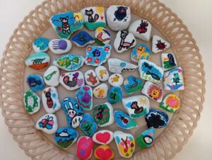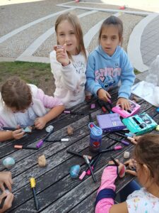Během září jsme se také zapojili do kreativní výzvy pro Super zoo s názvem Kamínkování, což je akce zaměřená na pomoc opuštěným mazlíčkům ve vybraných útulcích. Děti s nadšením malovaly a zdobily kamínky, které rozdávaly radost nejen zvířátkům, ale i lidem kolem nás.