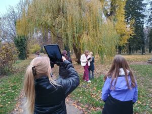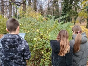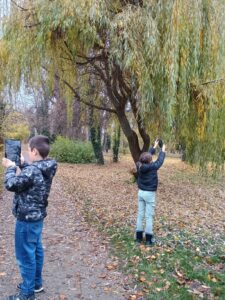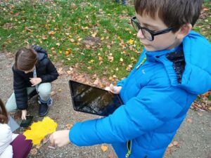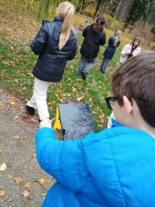 Ve vlastivědě jsme se vydali se 4. E prozkoumat blízké okolí školy. Nešli jsme ale jen na obyčejnou procházku, pracovali jsme s navigací. Nejprve jsme se ve škole naučili, jak vyhledávat trasy pomocí aplikace mapy.com. Pak jsme si vyhledali cestu k místnímu židovskému hřbitovu, zvolili jsme jednu z nabízených tras a vyrazili jsme do terénu. Mapy nás trochu potrápily na náměstí, když nám vybraly různé možnosti, kudy se ke hřbitovu dostat. Zvolili jsme tu nejpříjemnější, která vedla parkem, až jsme dorazili k určenému cíli. Po zpáteční cestě jsme vyzkoušeli další aplikaci – Seek od iNaturalist. Díky ní jsme dokázali pojmenovat stromy a keře v parku nebo také kachnu divokou, která si bezstarostně plula kolem nás. Určitě ještě aplikace v budoucnu využijeme.